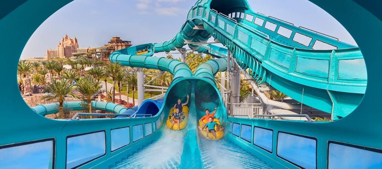 Dubai’s Aquaventure World, located next to the iconic Atlantis, The Palm, has earned its place as the largest waterpark on the planet – and for good reason. With 105 slides and attractions, three iconic towers, private beaches, and watersport adventures, it has something for every thrill level, making it a favourite among families. Among the most well-known rides are the Leap of Faith, Shark Attack, and Zoomerango, all delivering splashy excitement from start to finish. Families can also explore marine life through safe animal encounters, feed rays, or simply relax on the scenic beach. Dining spots across the park make sure energy levels stay high throughout the day.
