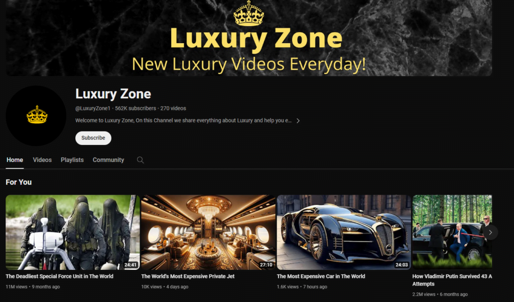 Meet Luxury Zone, a shining example of how to rule the luxury niche. In just 10 short months, they’ve not only captured attention but soared to a million views on one of their videos. How did they do it? With the simplicity of a script, a voice-over that exudes finesse, and the allure of video stock footage – the perfect formula for luxury allure.
