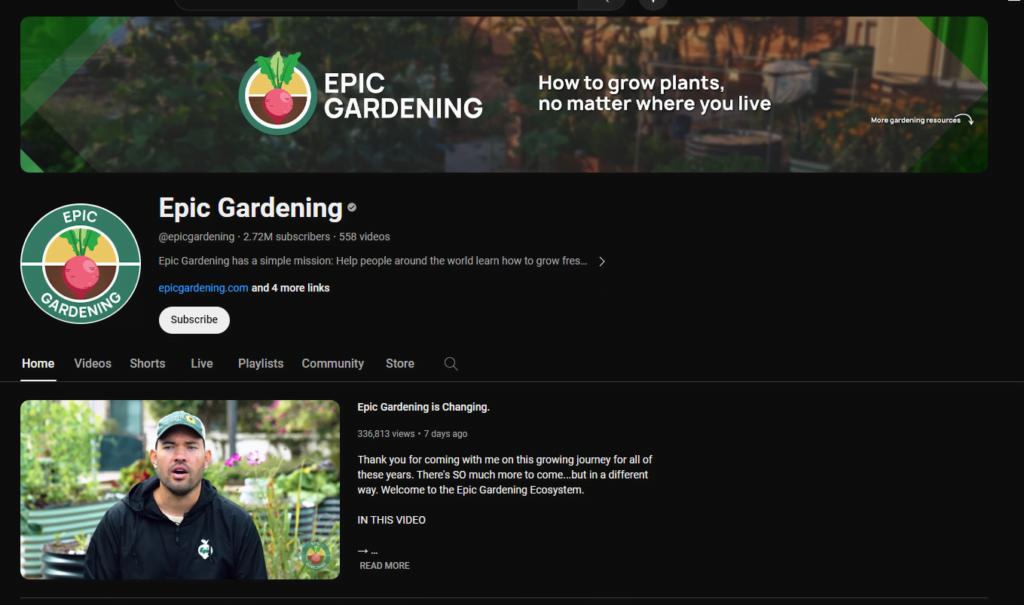 Epic Gardening, in particular, stands as a popular beacon in this niche, offering a diverse array of content that spans the spectrum of gardening and farming.