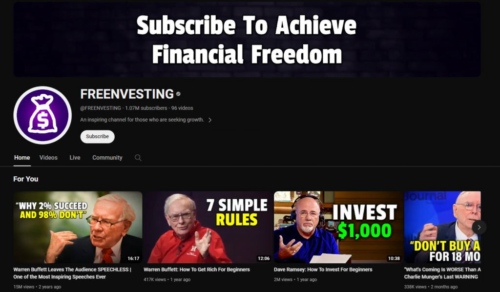 Consider the example of FREENVESTING, a YouTube channel entrenched in the investing niche. Through their content, they dissect various facets of investing, exemplified by their most viewed video amassing over 15 million views in just the past two years.