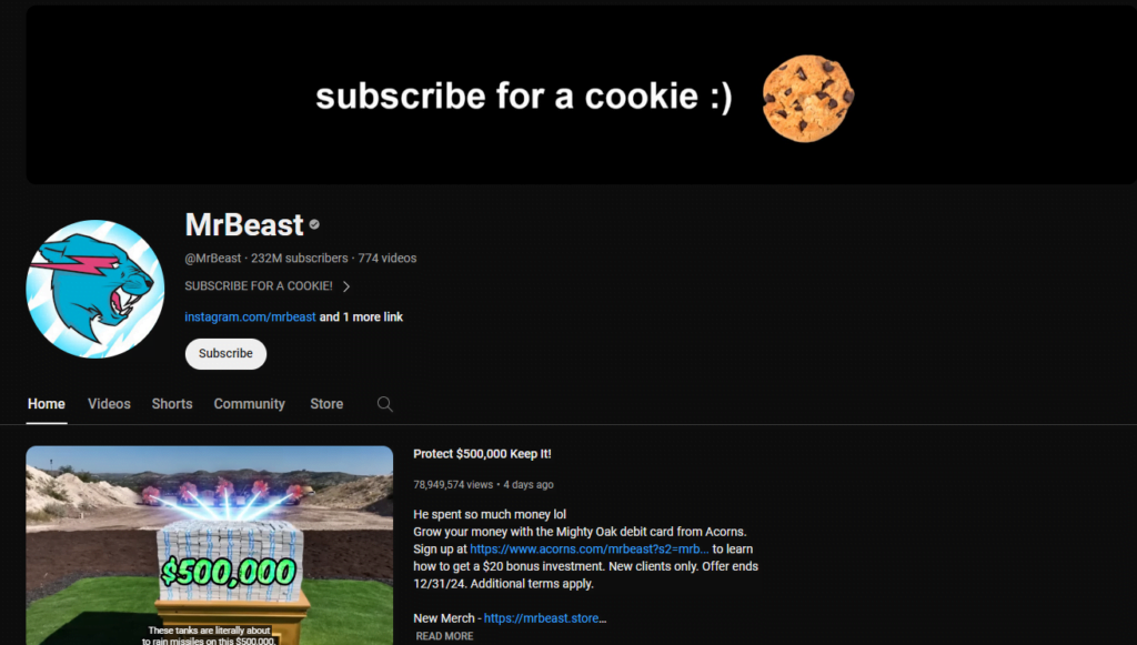 MrBeast’s success is a testament to the diverse and boundless nature of entertainment content on YouTube. His ability to create content that is not only entertaining but also socially impactful underscores the platform’s capacity to connect with audiences on a global scale.