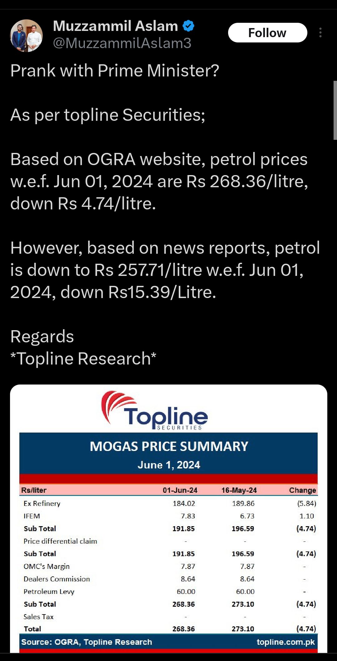 Following the Prime Minister’s directive, the Finance Ministry swiftly implemented the adjustment, lowering petrol prices to Rs 268.36 per litre and diesel prices to Rs 270.94 per litre.