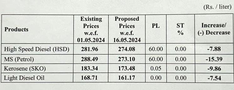 In response to the global decrease in petroleum product prices, the government of Pakistan has announced a reduction in petrol and high-speed diesel (HSD) prices on Wednesday, May 15th, 2024.