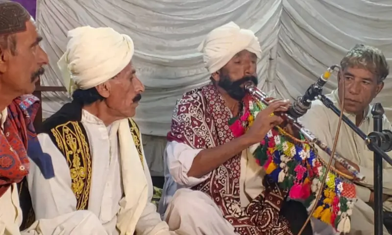 Prominent folk artists like Wali Mohammad Khaskheli on alghoza and Saen Dino Brohi on chang mesmerized the attendees with soulful tunes of traditional instruments including alghoza and chang. The distinguished guests included Larkano University Vice Chancellor Dr Naik Mohammad Shaikh and Sindh University Registrar Sajid Qayoom Memon.