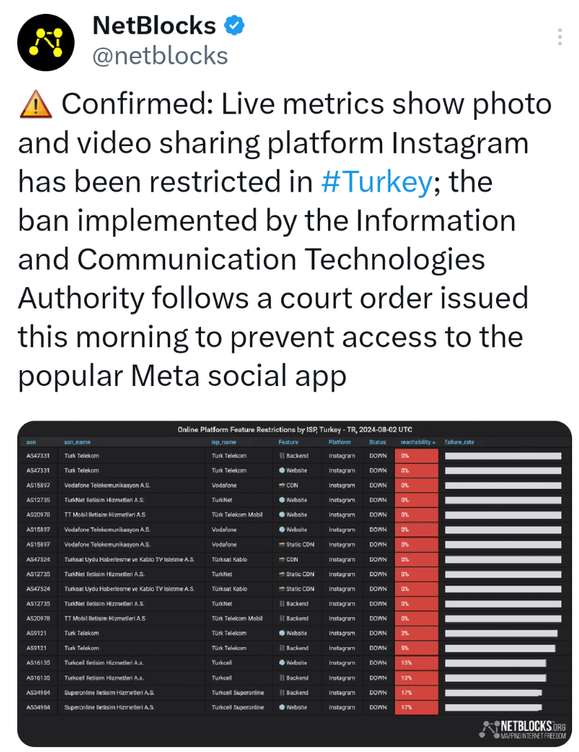 The block follows Turkish communications official Fahrettin Altun’s criticism of Instagram for removing condolence posts related to the killing of Ismail Haniyeh, a senior Hamas official. Altun denounced the action as “censorship” and noted that Instagram did not cite any policy violations for the block.