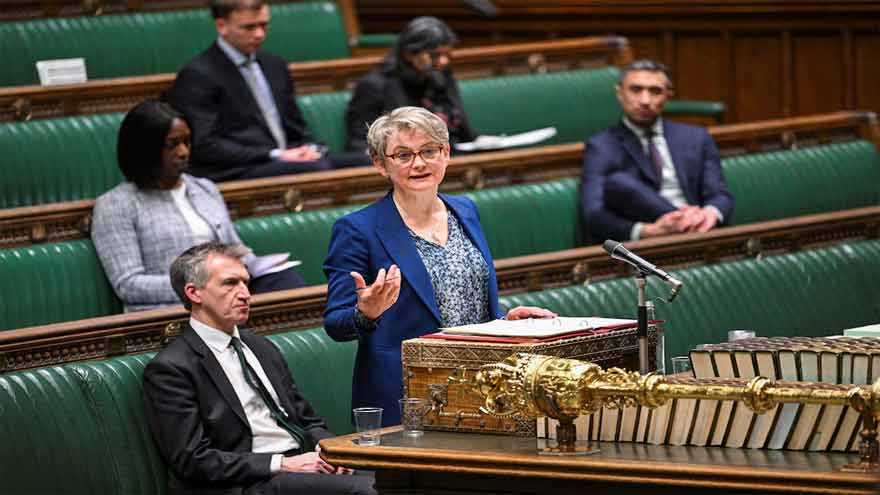 The United Kingdom’s foreign minister, Yvette Cooper, denounced as “totally unjustifiable” a ten-year prison sentence handed to a British couple by Iranian authorities.