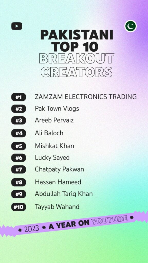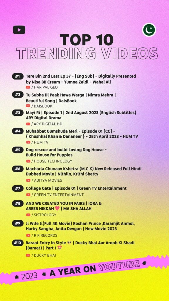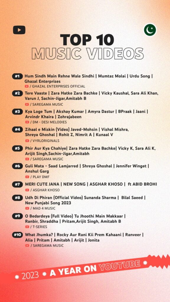 Karachi, Pakistan, January 10, 2024: Today, YouTube unveiled lists ranking the top trending videos, music videos, Shorts, creators, and breakout creators in Pakistan. This year’s lists are reflective of the most important moments to unfold in 2023 on and offline.